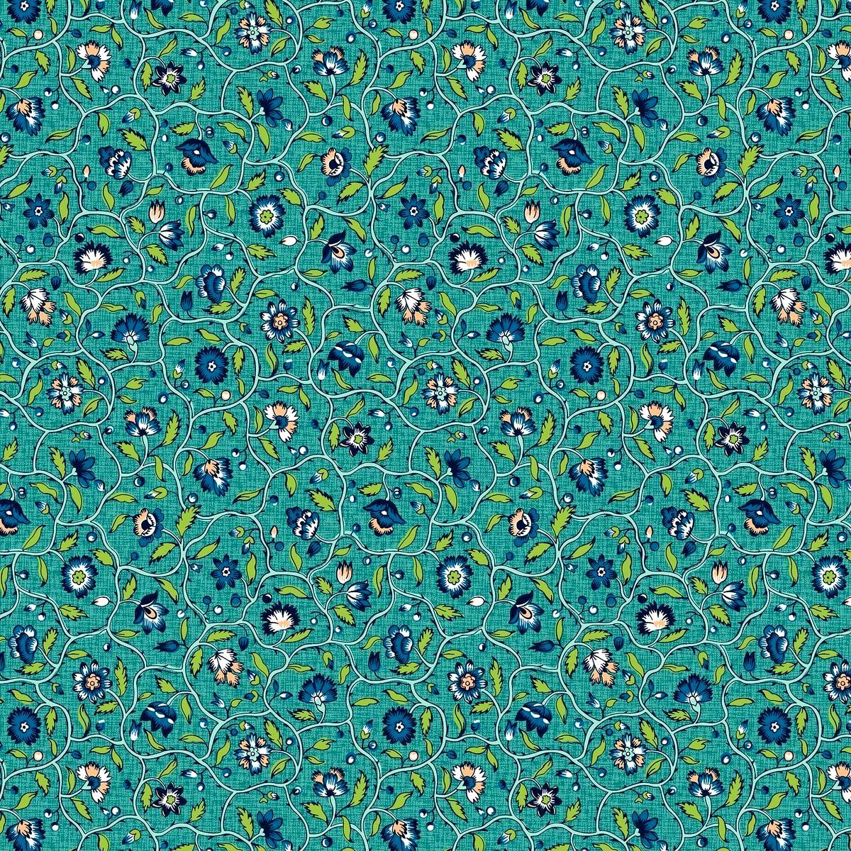 Cotton Quilt Fabric In Full Bloom Ramble Atlantis Blue