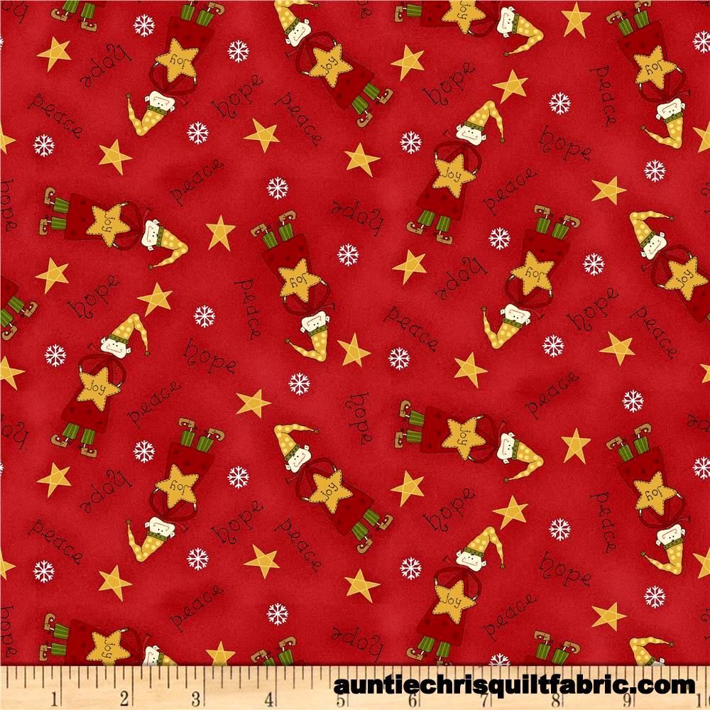 GOOD BUY COTTON QUILT FABRIC CHRISTMAS ELVES PEACE JOY SCATTERED ELVES RED listed in: