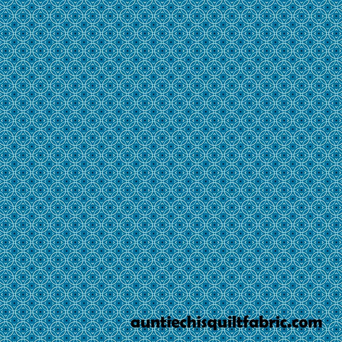 Cotton Quilt Fabric Bright Blossoms Medallion Tile Azure Blue