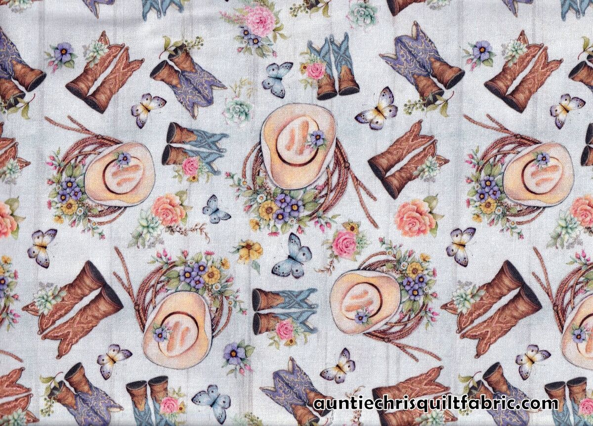 COTTON QUILT FABRIC HIGHLAND RANCH BLUE TOSSED BOOTS SPRINGS CREATIVE listed in:
