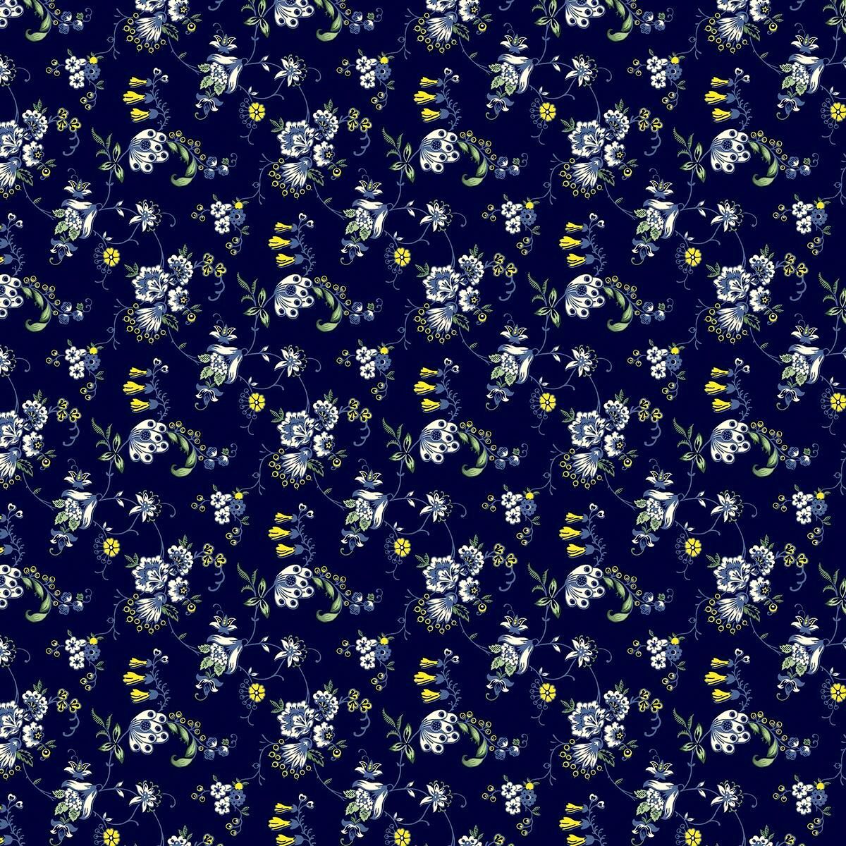 COTTON QUILT FABRIC SUNSHINE TERRACE EMMA II NIGHT NAVY BLUE listed in: