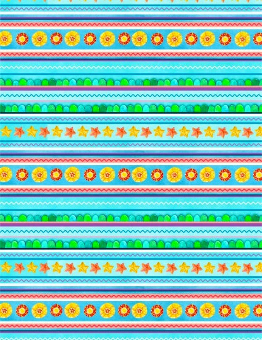 COTTON QUILT FABRIC LITTLE MERMAIDS BLUE OCEAN STRIPE listed in: