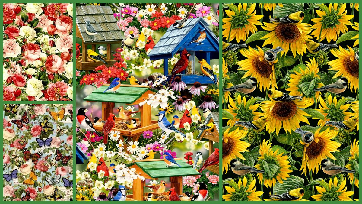 Theme - butterfly, birds, floral blooms, flower, calico, modern, garden