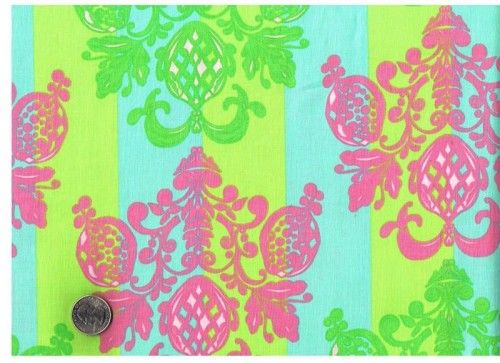Olivia's Holiday Pineapple Post by Tina Givens for Free Spirit. Beautiful bold wallpaper print. Pretty and girly girl damask stripe. Aqua blue, pink, green. Great for girls dresses, skirts, quilt backing, crafts, attire, fabric bags, home decor, quilts, applique and patchwork.